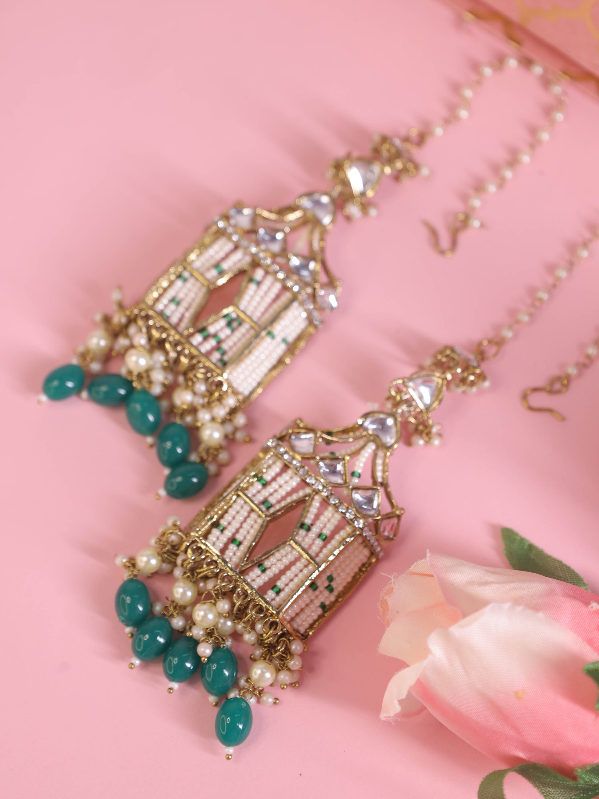 Rama Green Rajasthani Jharoka Jhumkis