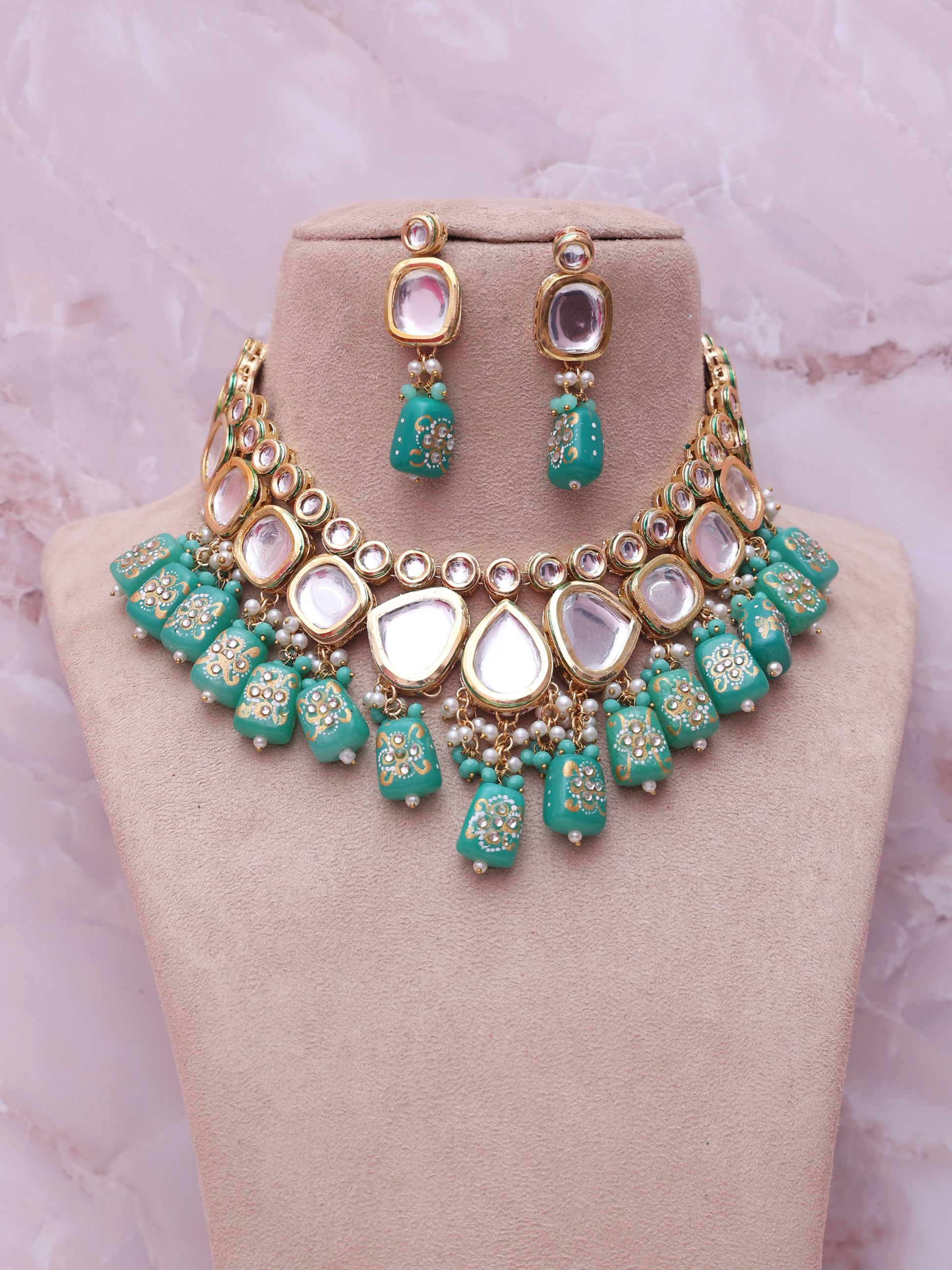 Kajol Inspired Royal Blue Meenakari Hasli Necklace Set