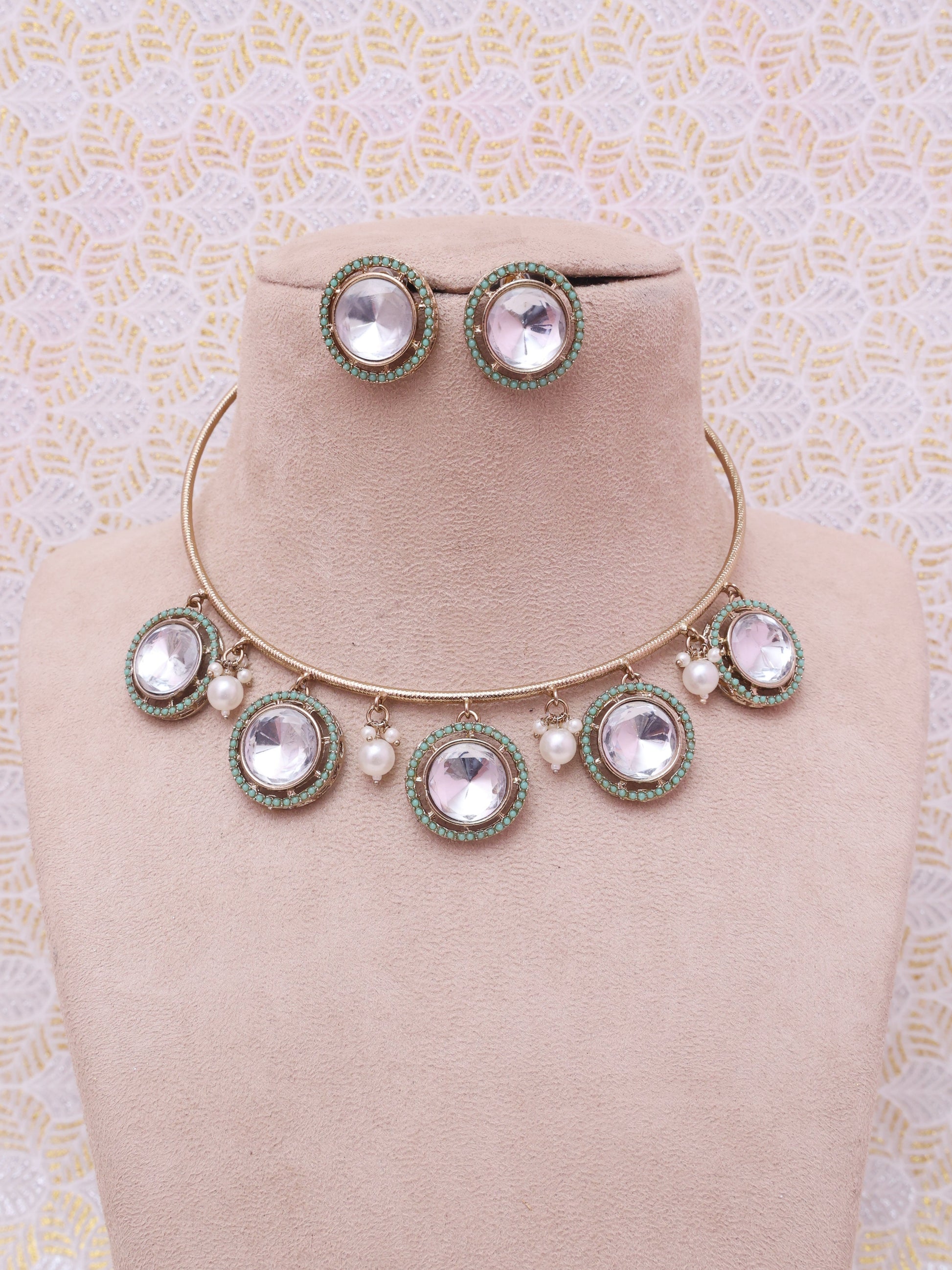 Kajol Inspired Royal Blue Meenakari Hasli Necklace Set