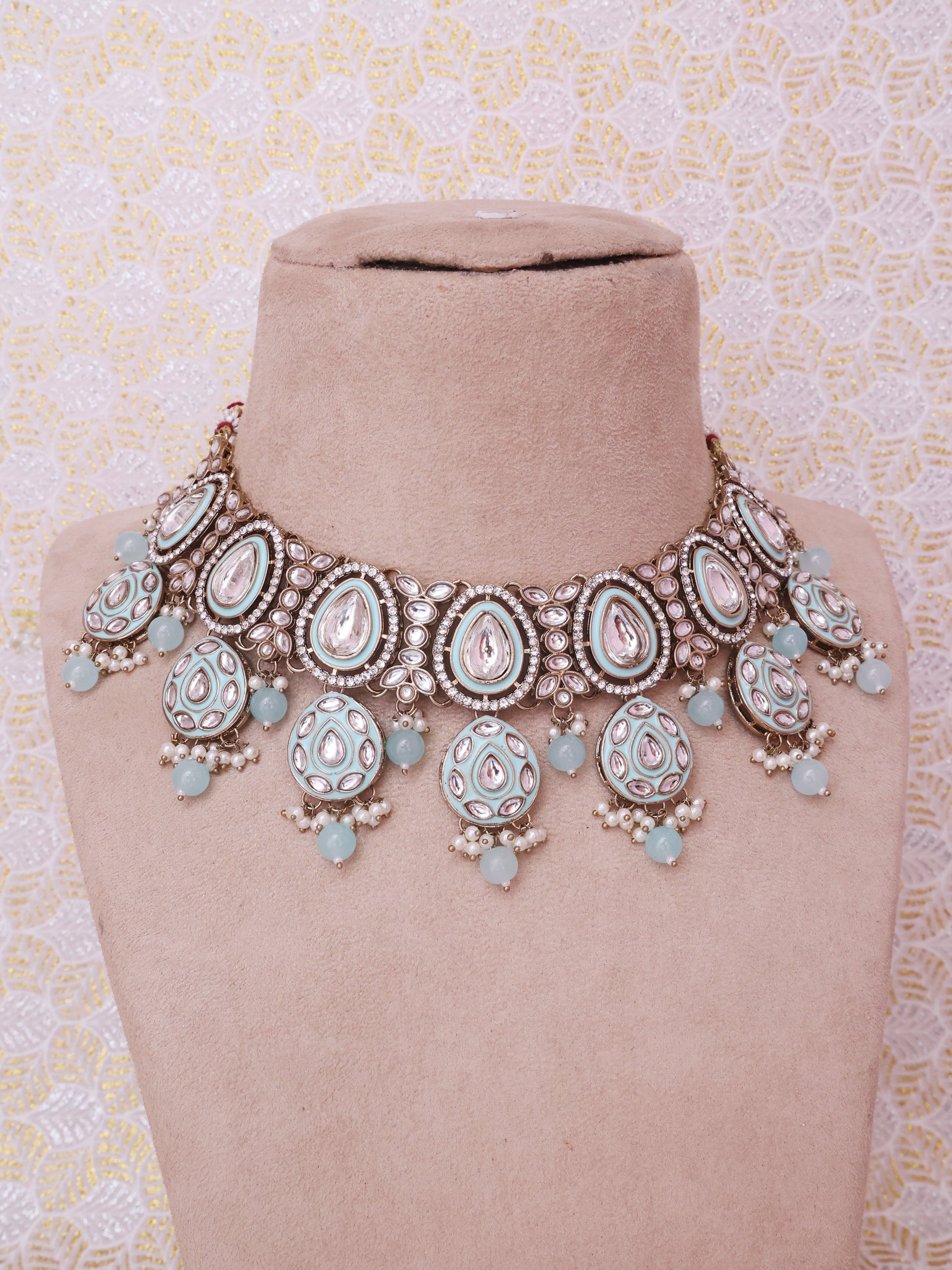 Kajol Inspired Royal Blue Meenakari Hasli Necklace Set