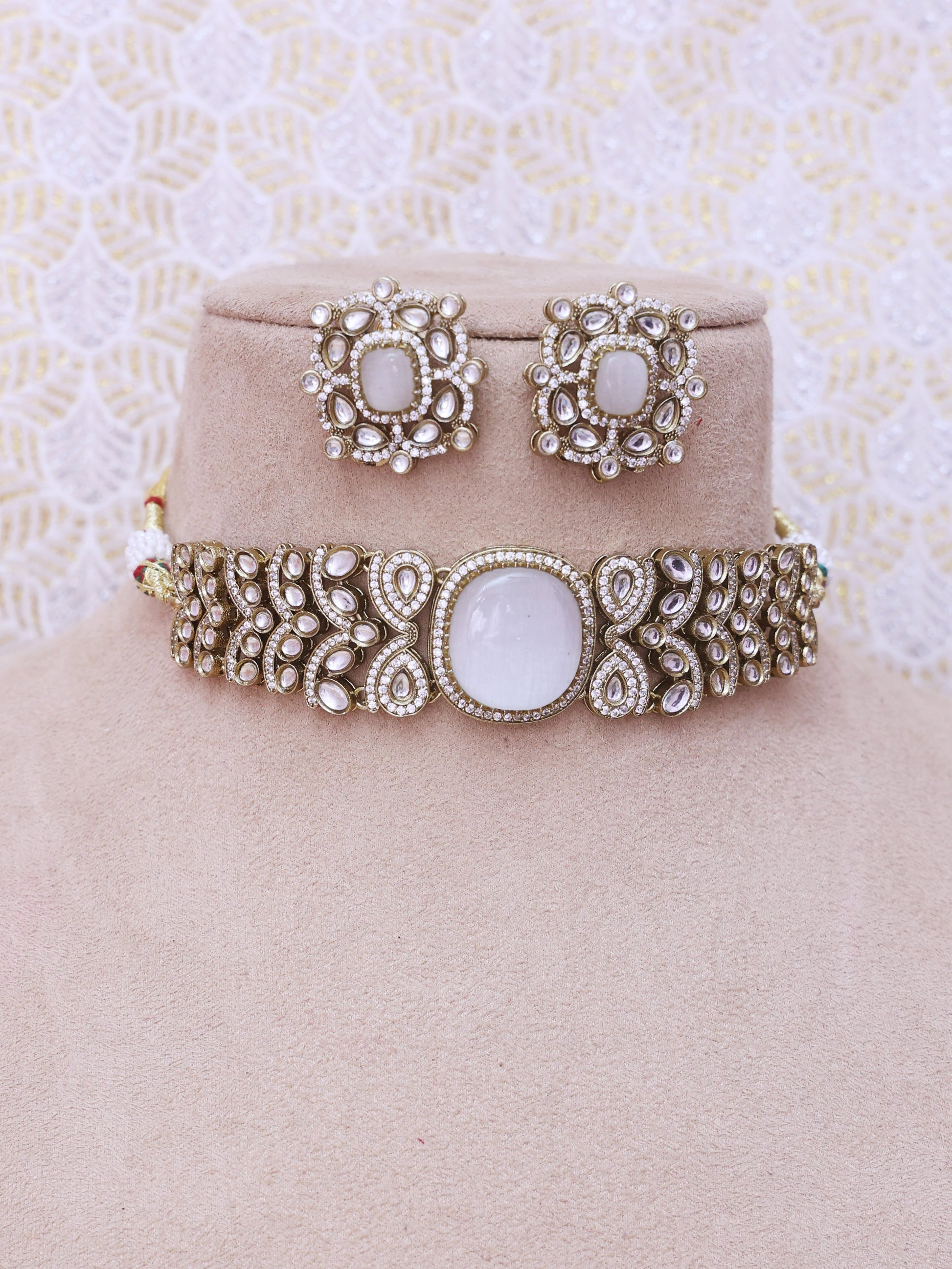 Kajol Inspired Royal Blue Meenakari Hasli Necklace Set