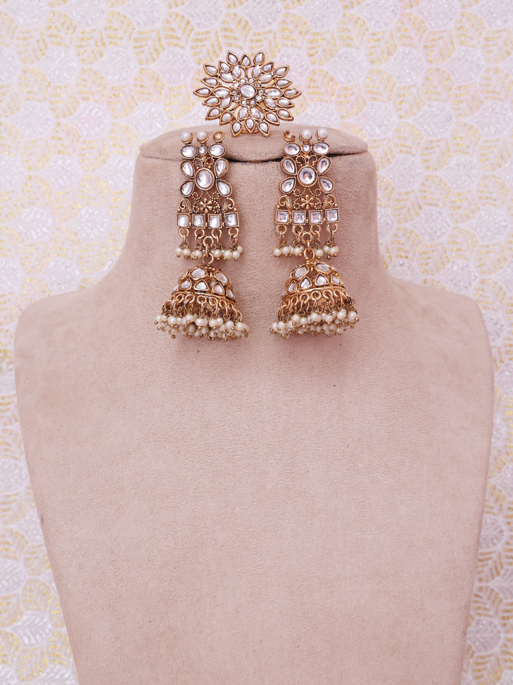 White Zareena Sahara Jhumkis with Tika